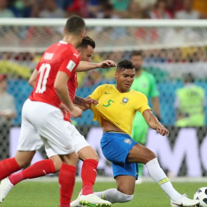 A única chance do Brasil veio em um lance iniciado e finalizado por Vini. Ele roubou a bola do lateral, tocou para Casemiro, ela rodou e chegou em Raphinha. O cruzamento conectou as duas pontas, e Vini arrematou, livre, mas mal. Os suíços pouco ameaçavam.