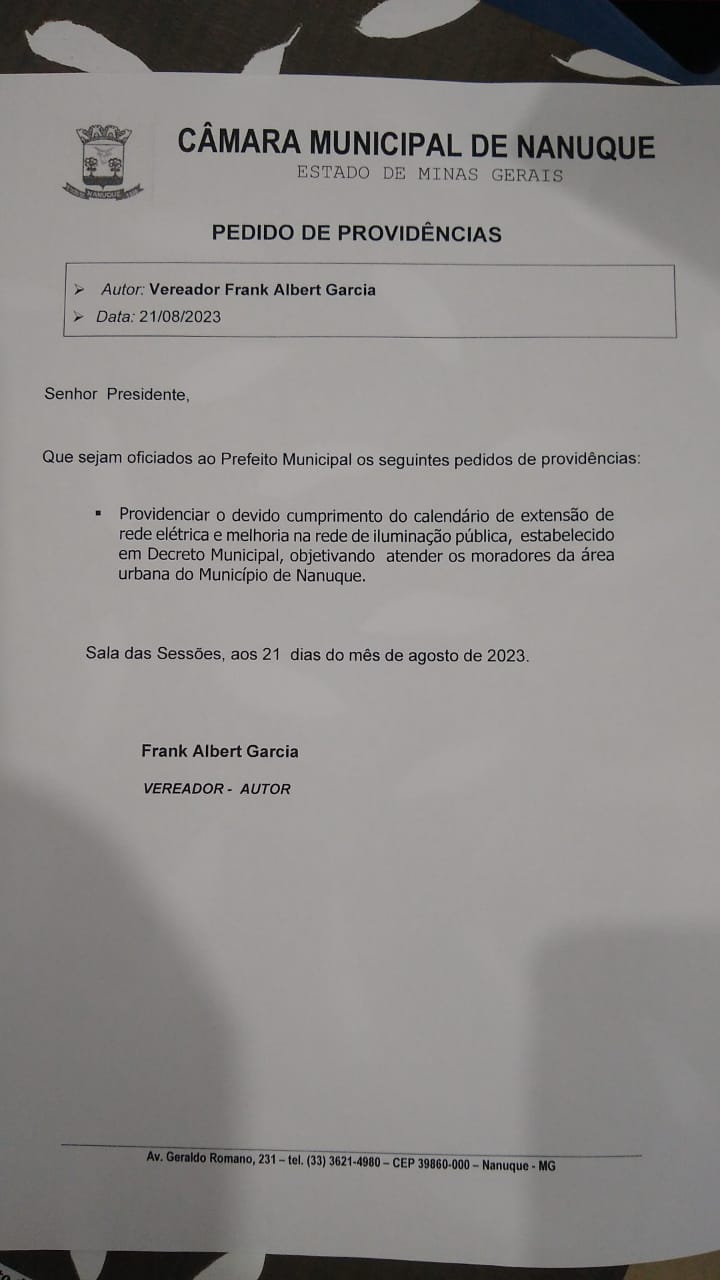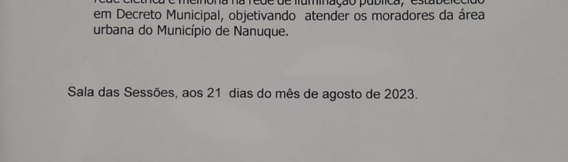 Requer que seja providenciado o devido cumprimento do calendário de extensão de rede elétrica e melhoria na rede de iluminação pública, estabelecido em Decreto Municipal, objetivando atender os moradores da área urbana do município de Nanuque.