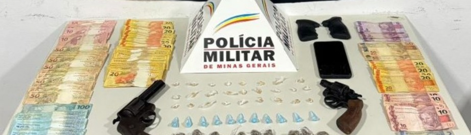 Durante a busca no lote, as equipes encontraram substâncias ilícitas, o que levou ao flagrante e, com o apoio da radiopatrulha, a abordagem da residência. No imóvel, mais drogas foram localizadas, além de armas de fogo e dinheiro, caracterizando o envolvimento dos suspeitos no tráfico.