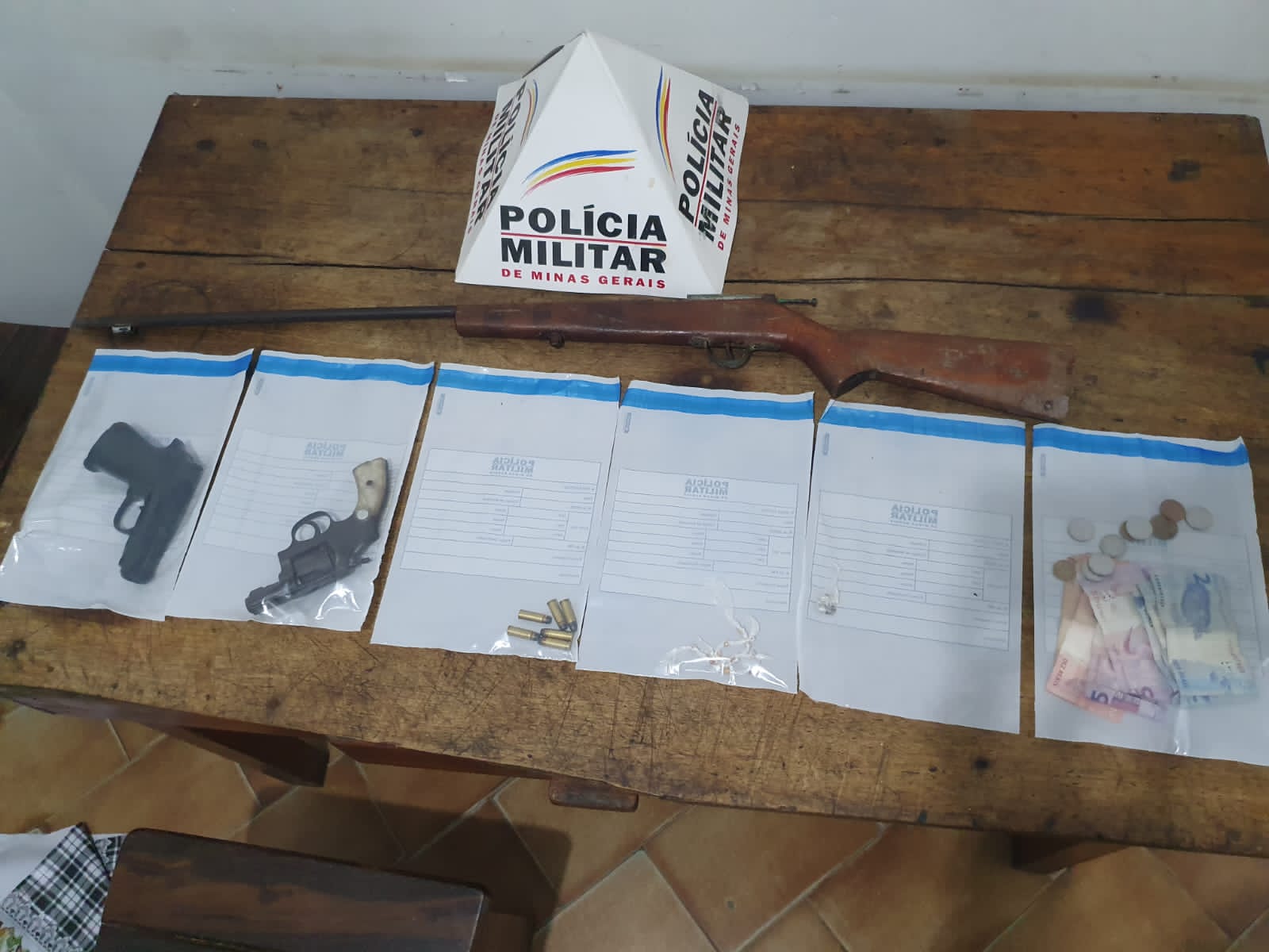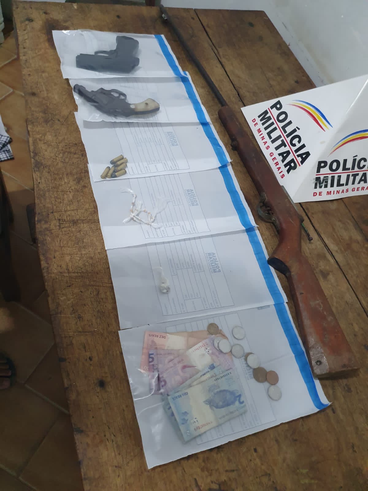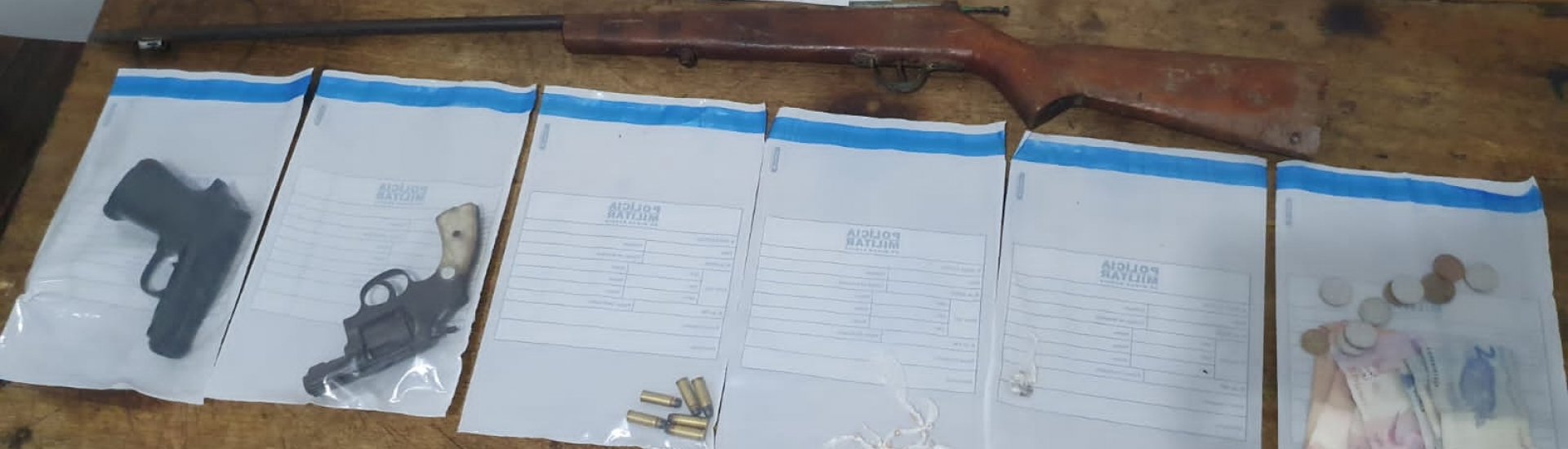 Durante Operação Preventiva realizada no bairro Pintolândia, em Serra dos Aimorés nesta quarta-feira(03), no período noturno aproximadamente às 20:20 h, a Polícia Militar recebeu denuncias anônimas que dois indivíduos estariam traficando drogas e portando armas de fogo em via pública.