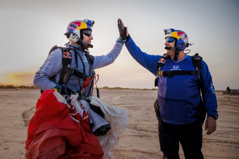 O acontecimento seria inédito e consistia nos dois desligarem os motores das aeronaves Cessna 182 e, após alguns segundos de queda livre, entrassem no avião do outro. Somente Aikins conseguiu a façanha, o outro saltou de paraquedas para um pouso seguro. O evento foi transmitido no Brasil pelo canal SporTV.