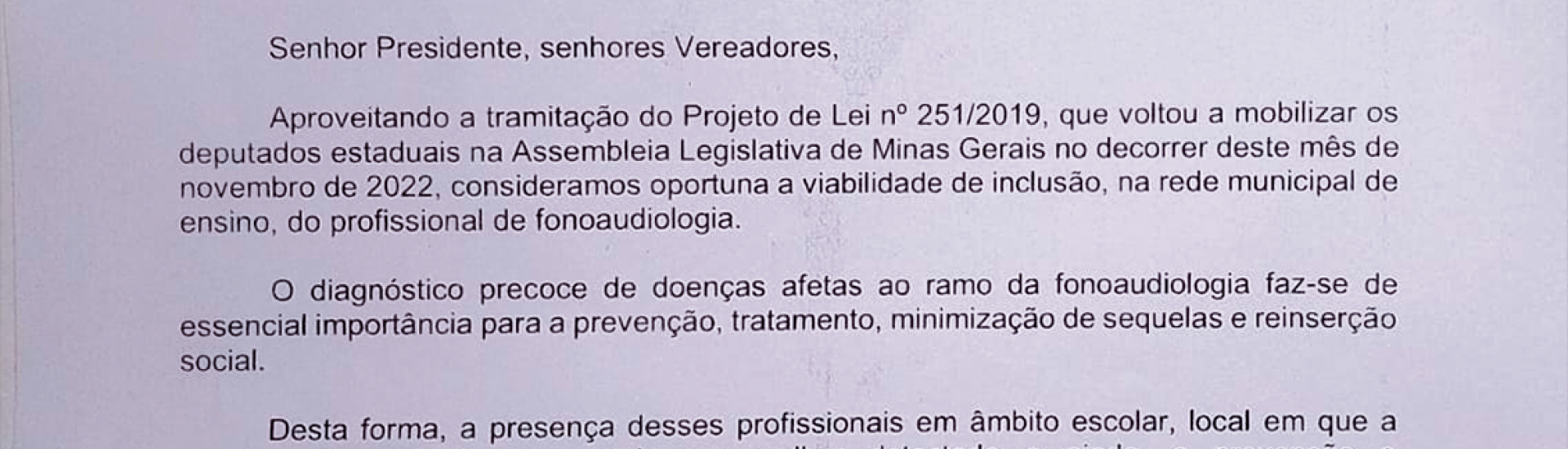 Dentre as indicações feitas pelo vereador Elson de Souza Lima, para tramitação regimental no intuito de serem emcaminhadas para o prefeito municipal, foi proposto a inclusão do profissional de fonoaudiologia na rede municipal de ensino. De acordo a recomendação, essa indicação contribui para que o profissional possa realizar um trabalho em conjunto com os professores para identificar antecipadamente problemas de fala e audição dos alunos.
