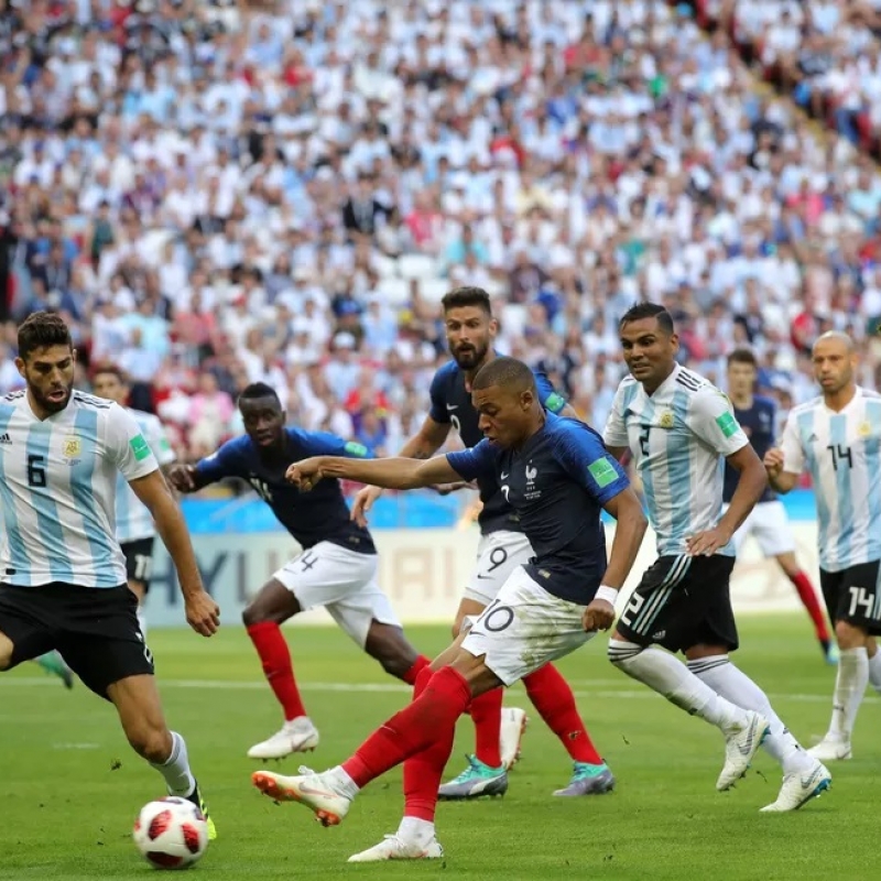 Foram apenas três confrontos na história das Copas e os argentinos levam vantagem. Na fase de grupos do primeiro Mundial, em 1930, os hermanos venceram por 1 a 0, com gol de Monti. Quase meio século depois, em 1978, nova vitória da Argentina, em outro confronto na primeira fase. Passarella e Luque marcaram, enquanto Platini descontou. Na última edição, em 2018, a vingança da França, em vitória por 4 a 3 com show de Mbappé nas oitavas de final.