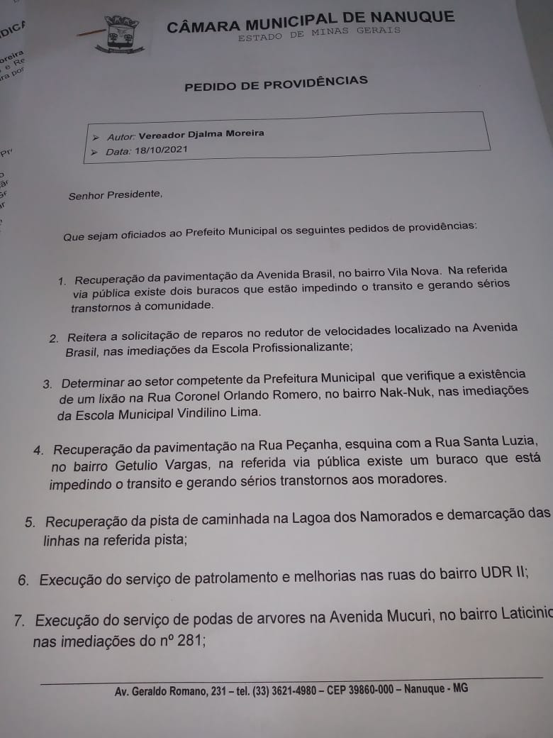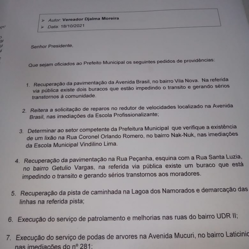 ATOR: VEREADOR DJALMA MOREIRA DATA: 18/10/2021