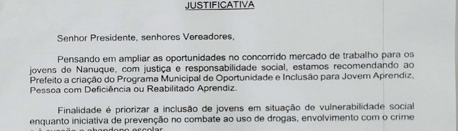 • Implantação do Programa Municipal de Oportunidade e Inclusão para Jovem Aprendiz para jovens com deficiência ou reabilitação aprendiz. Com a finalidade de priorizar a inclusão de jovens em situação de vulnerabilidade social e auxiliando no combate ao crescente aumento do uso de dogas, envolvimento com o crime e a evasão e abandono escolar.